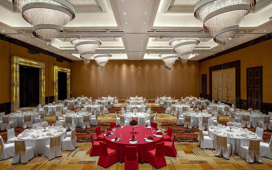 1500㎡的無柱大宴會廳,800㎡的宴會前廳,7.8m的挑高空間配上進口埃及水晶制成的大吊頂,特別設計的進口餐具,讓您的婚典氣度奢華。量身定做的婚宴菜單,經(jīng)驗豐富的婚典專家及無微不至的個人專屬服務,讓您輕輕松松體驗“一站式”千人世界婚典。