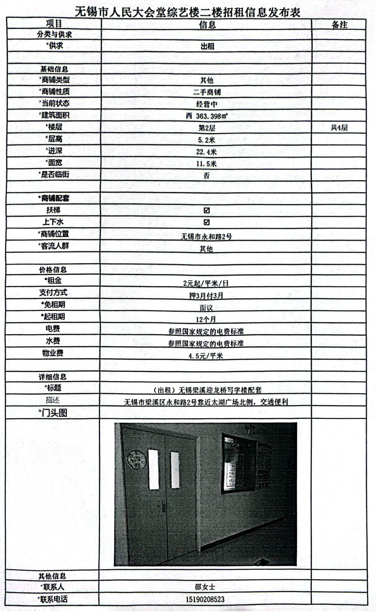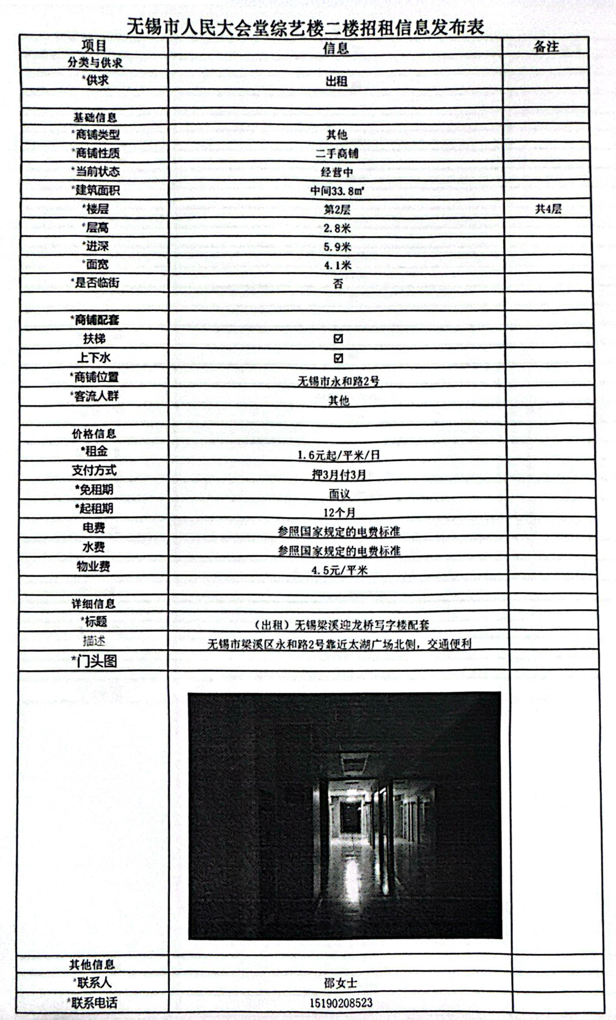 • 下一篇: 無錫市人民大會堂綜藝樓二樓租賃成交信息發(fā)布表