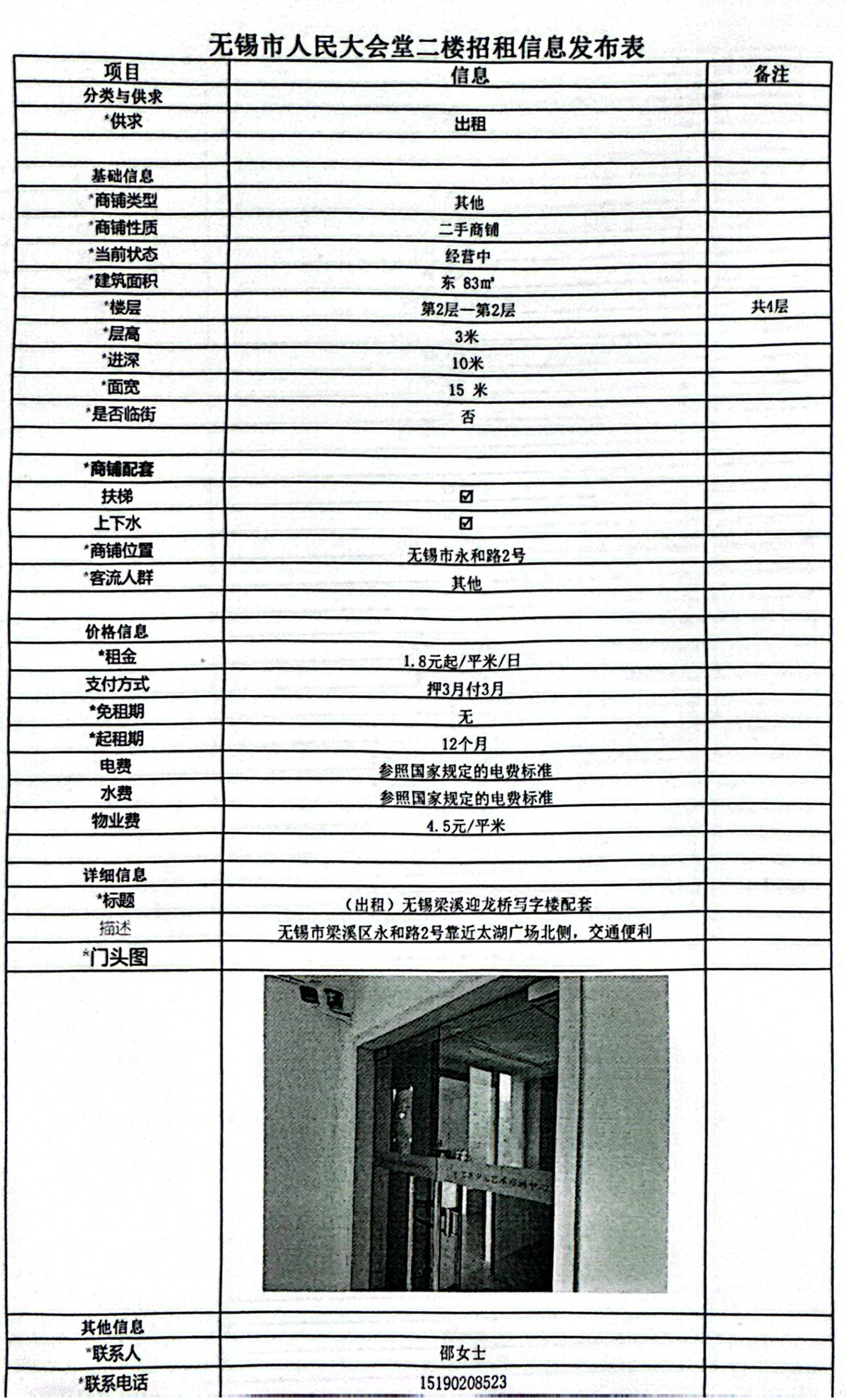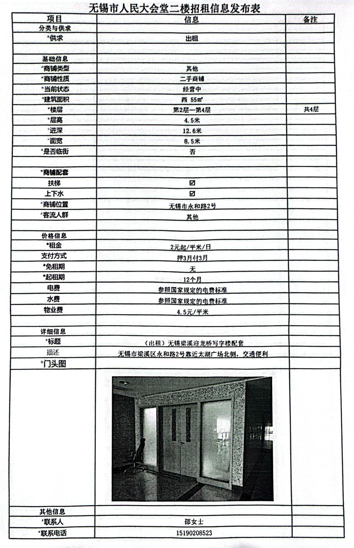 無錫市人民大會堂二樓招租信息發(fā)布表